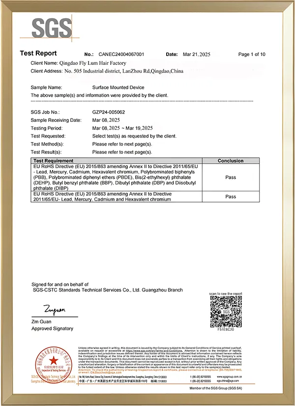 การผลิตต่อผมของเราเป็นไปตามมาตรฐานสหภาพยุโรป ผ่านการรับรอง CE และ RoHS เราได้รับการรับรองผู้ขายทองคำ