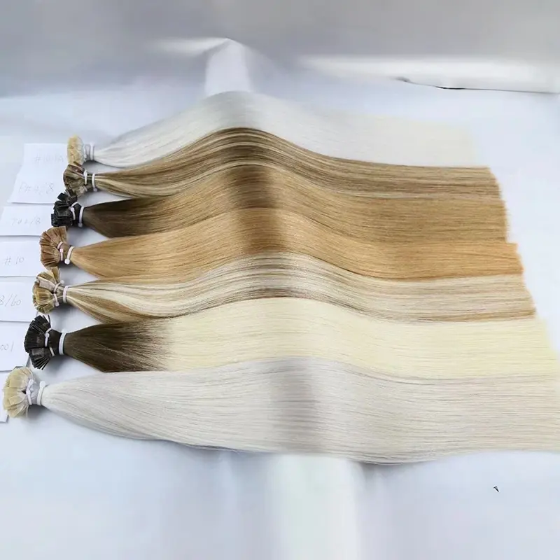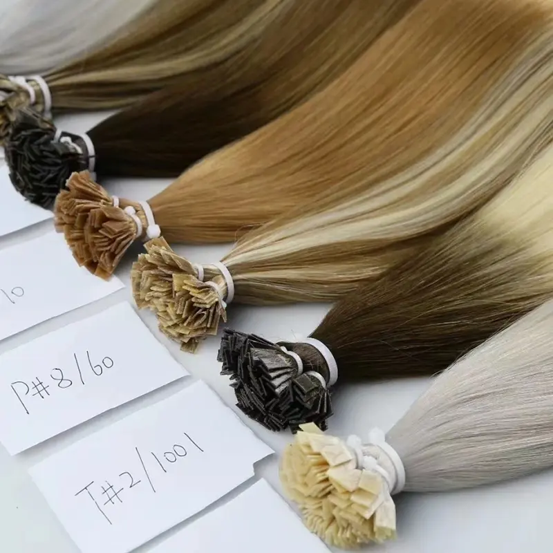 การต่อผมแบบปลายแบน (เช่น เคราตินแบบแบนหรือแบบยึดติดแบบแบน) คือเส้นผมที่ต่อไว้แล้วปลายด้วยเคราตินชิ้นแบนบาง ช่างทำผมจะต่อผมแต่ละเส้นเข้ากับผมธรรมชาติส่วนเล็กๆ ของคุณโดยใช้ขั้วต่อความร้อน Lum Hair ทรงแบนพันรอบเส้นผมแต่ละเส้นอย่างใกล้ชิด สร้างการยึดเกาะที่ยืดหยุ่นและแนบเนียนซึ่งดูเรียบกว่าทรง U-tip แบบคลาสสิก เนื่องจากเคราตินมีลักษณะแบน การต่อผมจึงทำให้ลูกค้ารู้สึกเบาลงและเป็นธรรมชาติมากขึ้นเมื่ออยู่บนหนังศีรษะ เป็นสินค้ายอดนิยมสำหรับลูกค้าที่ต้องการสวมใส่นานขึ้นแต่เทอะทะน้อยลง การตกแต่งเรียบเนียนและไร้รอยต่อ ผสมผสานได้อย่างง่ายดายแม้ในทรงผมแบบปัดข้างหรือแสกข้าง
