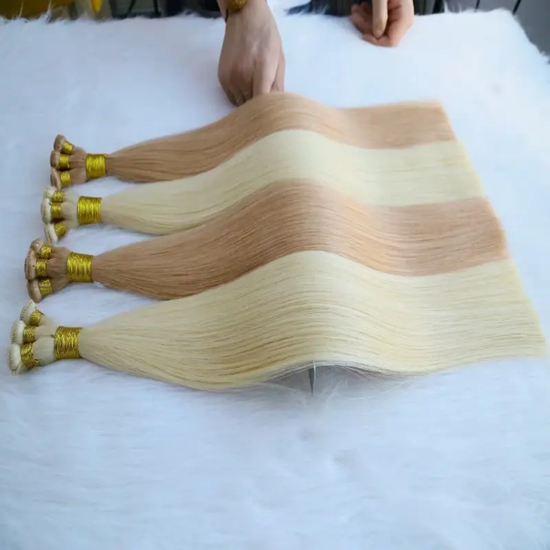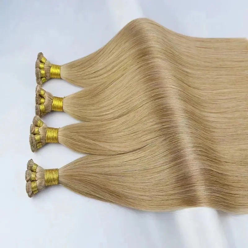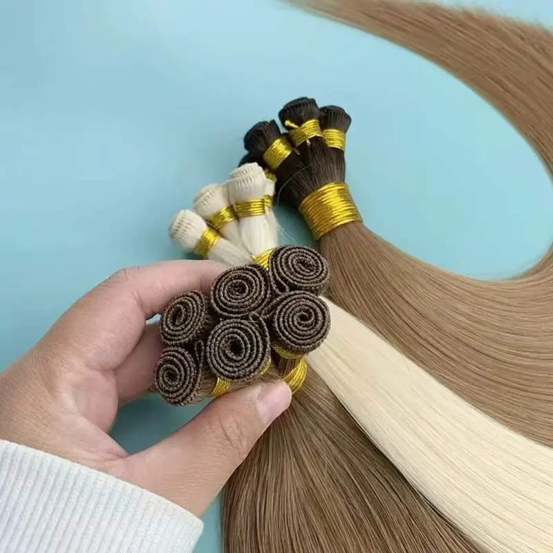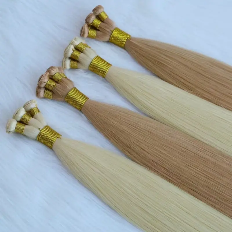 การต่อผมแบบมัดมือนั้นประดิษฐ์ขึ้นด้วยมือทั้งหมด โดยเส้นผมแต่ละเส้นถักเข้าด้วยกันโดยช่างฝีมือผู้ชำนาญ สิ่งนี้จะสร้างเส้นพุ่งที่บางที่สุดและไร้รอยต่อที่สุดเท่าที่จะเป็นไปได้ ทำให้เหมาะสำหรับลูกค้าที่มีผมเส้นเล็กหรือผมบาง ด้วยการทอมือด้วยมือ เส้นพุ่งจึงวางราบกับหนังศีรษะ ทำให้ได้ผลลัพธ์ที่เป็นธรรมชาติและมองไม่เห็น