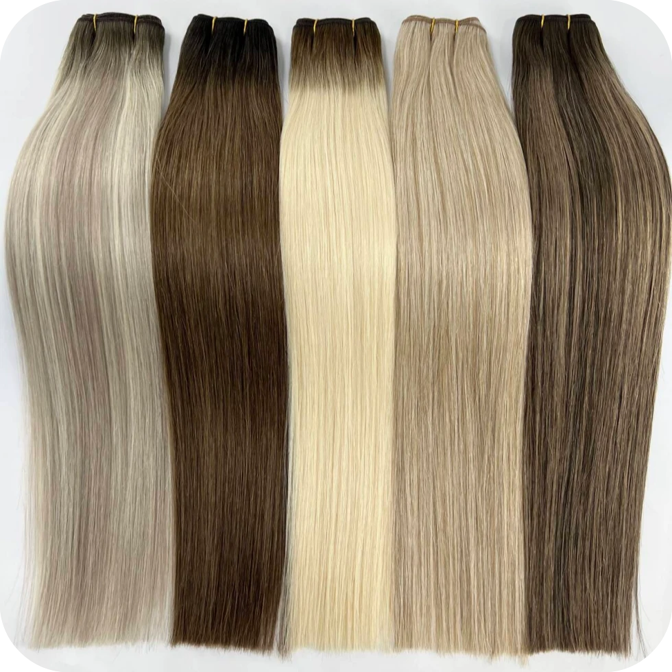 ส่วนต่อผม Machine Weft ของเราทำจากเส้นผมมนุษย์ Remy คุณภาพสูง โดยมีหนังกำพร้าที่ไม่บุบสลายอยู่ในแนวเดียวกันเพื่อหลีกเลี่ยงการพันกันและการหลุดร่วง นำเสนอเนื้อสัมผัสที่เป็นธรรมชาติและเรียบเนียนที่ผสมผสานกับผมธรรมชาติได้อย่างลงตัว ผ้าทอผม Lum มีความหลากหลายสูง มีให้เลือกหลายความยาว รูปแบบคลื่นและสี ช่วยให้จัดแต่งทรงผมได้ฟรี เช่น การดัดผม ยืดผม และการย้อม ตอบสนองความต้องการที่หลากหลายของเส้นผมประเภทต่างๆ และความชอบในการจัดแต่งทรงผมได้อย่างสมบูรณ์แบบ พวกเขาได้รับความนิยมจากผู้เชี่ยวชาญด้านร้านเสริมสวย และคนรักเส้นผมทั่วโลก